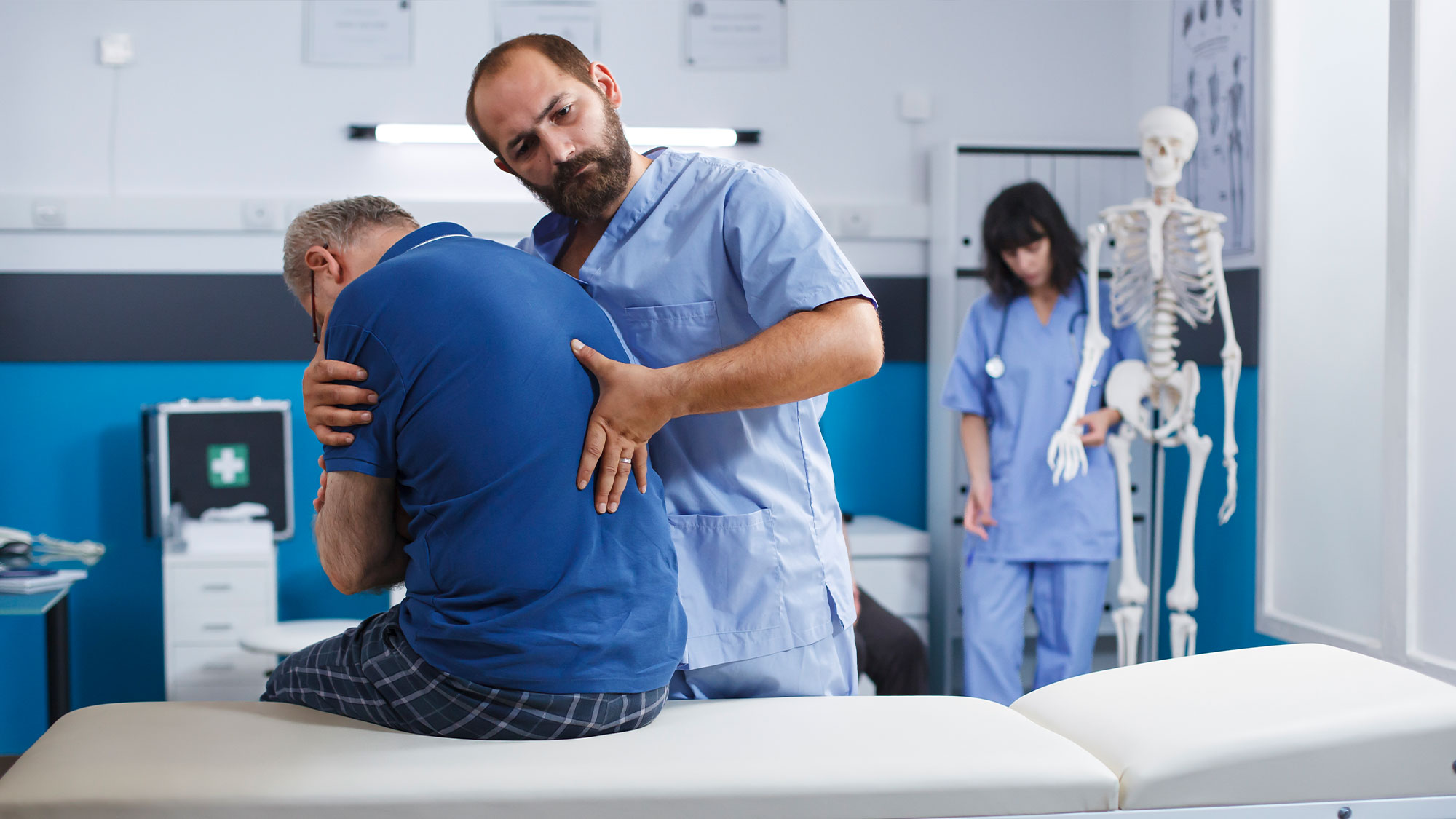 Our therapists perform a full evaluation that may include spinal alignment checks, muscle strength tests, and range-of-motion assessments. We coordinate care with your physician if needed to ensure a complete treatment approach.